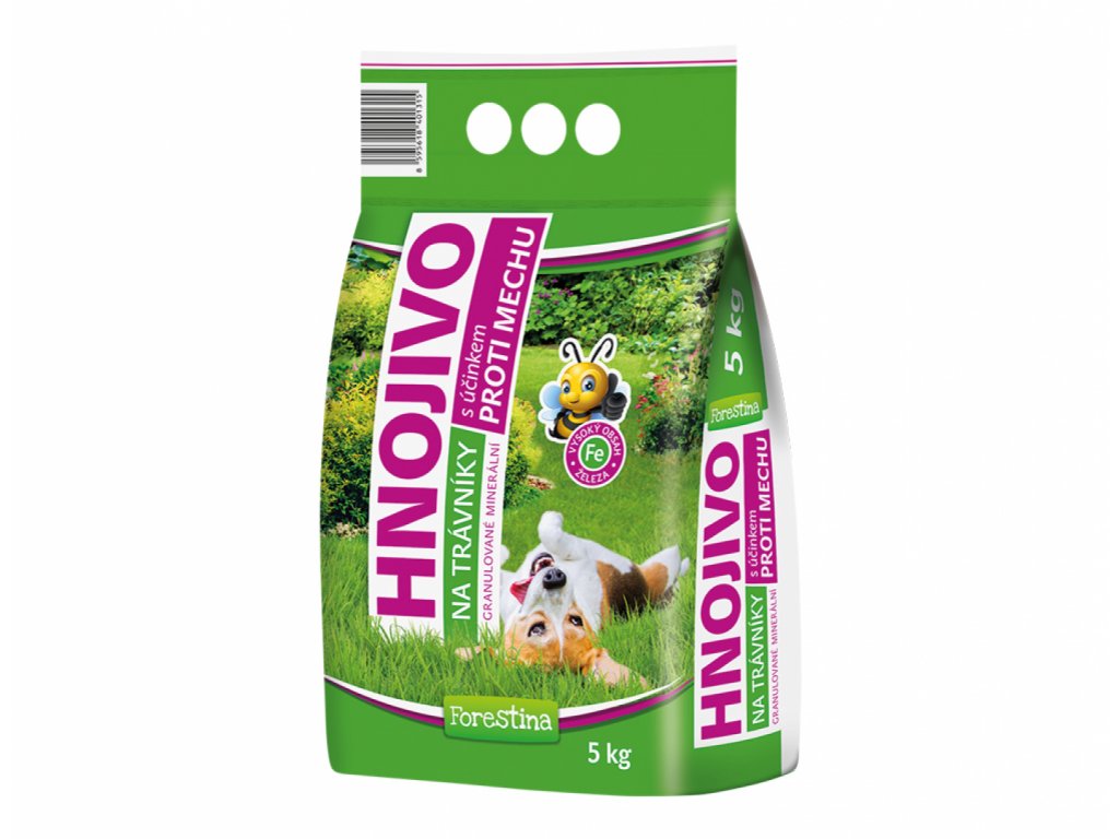 Minerální hnojivo na trávníky s účinkem proti mechu, ve formě granulí. Hnojivo obsahuje zejména dusík, který má příznivě ovlivňuje růst trav a zarůstání míst po mechu a železo, které má hlavní zásluhu na odstranění mechu z trávníku. Doporučené dávkování je 35g na m2. Celé balení tedy vystačí na 143 m2. Balení: plastový pytel. Velikost balení: 5kg.Doplňkové parametry