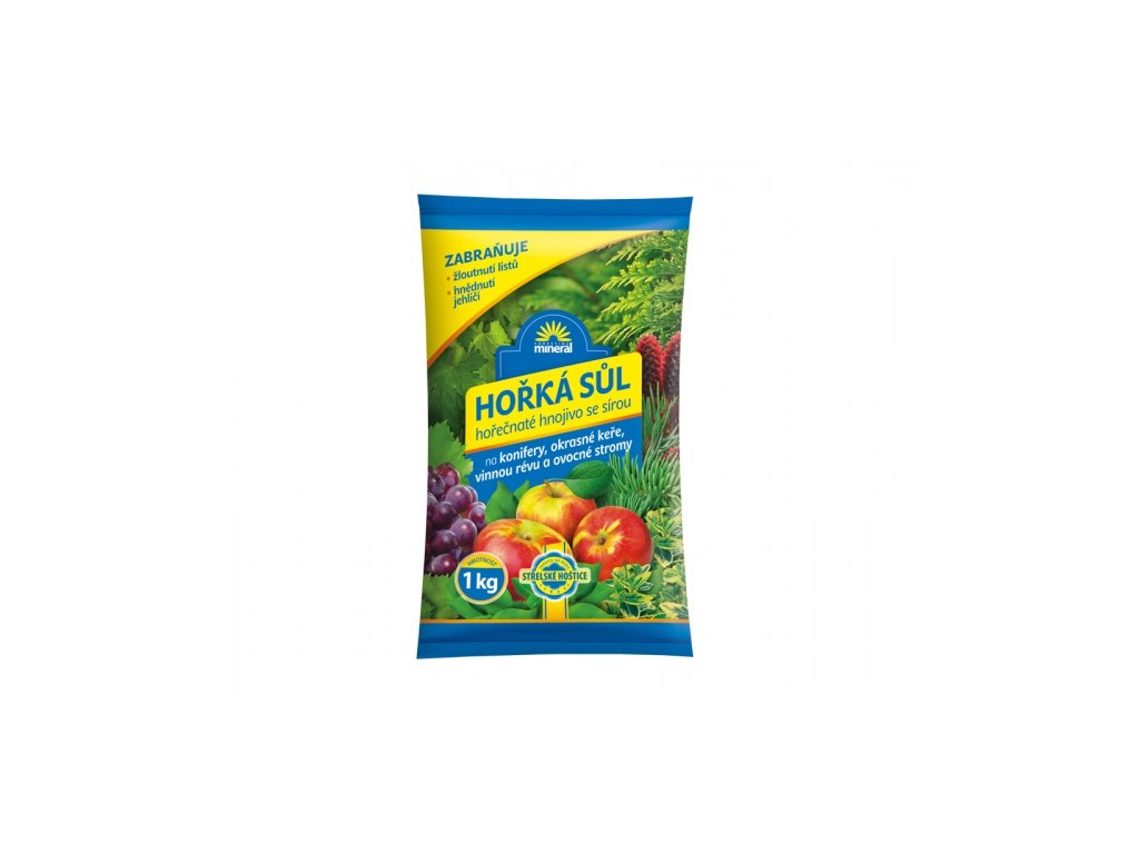 Minerální hořečnaté hnojivo je určeno k hnojení zeleniny, rychlené zeleniny, ovocných stromů a keřů, chmele, vinné révy a okrasných jehličnanů. Dodává rostlinám potřebný hořčík, jehož nedostatek se projevuje žloutnutím listů či hnědnutím jehličí a sníženou plodností rostlin. Aplikace: hnojivo se rovnoměrně rozhodí a poté se zapraví do půdy. Pro listové hnojení je doporučeno 5 - 15 g na 1 litr vody. Balení: 1 kg.Doplňkové parametry