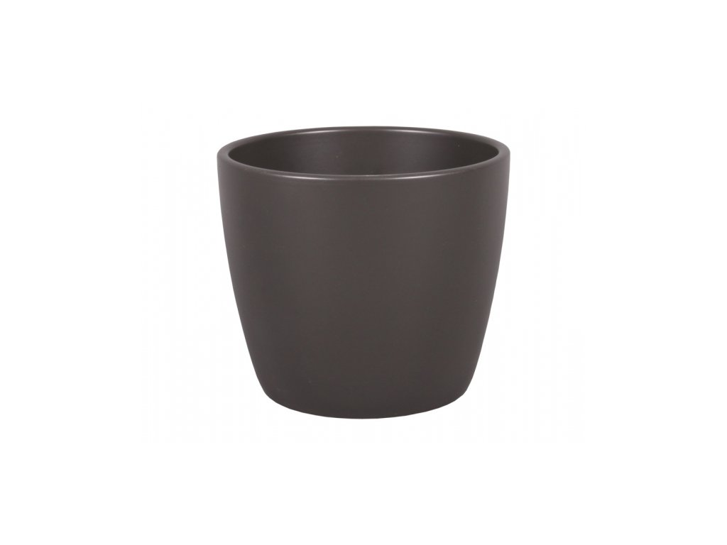 Hladký matný jemně kónický keramický obal. Vhodný pro květináče s rostlinami a pro jiné dekorace. Obal se používá v interiéru. Průměr: 24 cm, výška: 22 cm. Barva: antracit.Doplňkové parametry