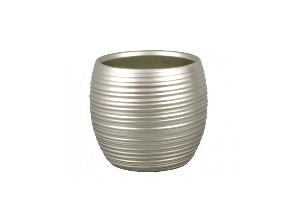 Keramický lesklý obal na květník zdoben proužky. Barva: chrom zlatá. Průměr: 15 cm.Doplňkové parametry