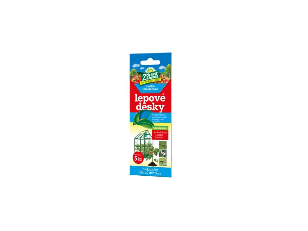 Lepové desky slouží jako biologicky šetrný prostředek na ochranu rostlin před napadením škůdci. Jsou vhodné pro ochranu zeleniny ve skleníku, fóliovníku, pařeništi a pro ochranu pokojových květin v domácnosti. Svou barvou silně lákají škůdce, kteří se následně přilepí. Desky chrání před třásněnkami a dalším hmyzem. Barva: modrá. Balení: 5 ks.Doplňkové parametry