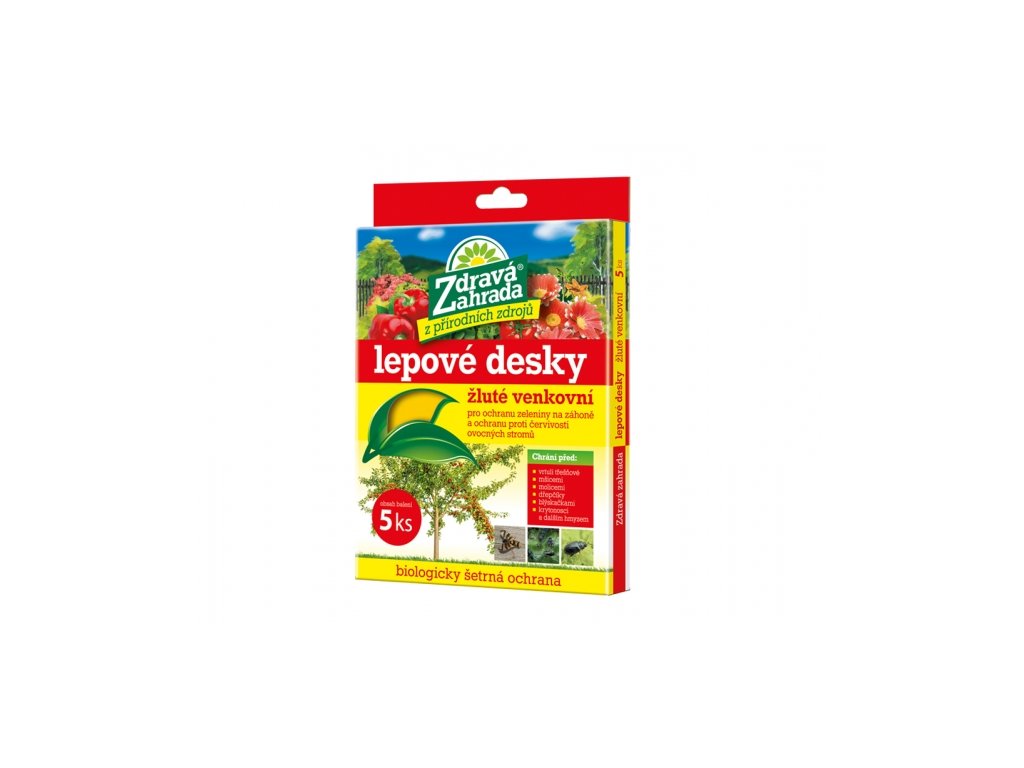 Lepové desky slouží jako biologicky šetrný prostředek na ochranu rostlin před napadením škůdci. Jsou vhodné pro ochranu zeleniny na záhoně a ochranu proti červivosti ovocných stromů. Desky chrání před vrtulí třešňovou, mšicemi molicemi, dřepčíky, blýskačkami, krytonosci a dalším hmyzem. Barva: žlutá. Balení: 5 ks.Doplňkové parametry