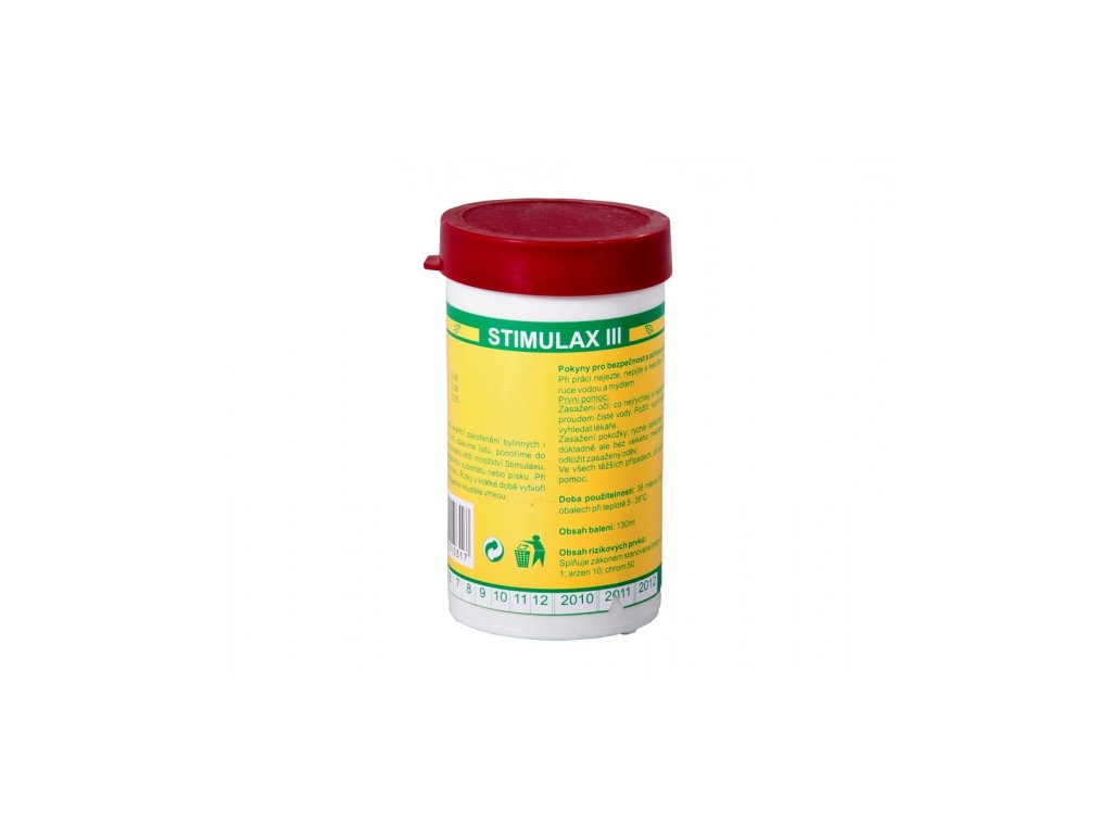 Stimulax III (ge) je určen pro kvalitní zakořenění a urychlenou tvorbu kořenové soustavy bylinných i dřevnatých řízků. Řízky pro zakořeňování připravíme tak, že spodní část řízku cca 2 - 3 cm zbavíme listů, ponoříme do stimulátoru a pomalu vyjmeme, aby na řízku zůstalo větší množství Stimulaxu. Poté řízky zasadíme do připraveného zahradního substrátu nebo písku. Při sázení dbáme, abychom Stimulax nesetřeli. V krátké době pak řízky vytvoří bohatý kořenový systém. Jak řízky tak zeminu udržujeme neustále vlhkou.Doplňkové parametry