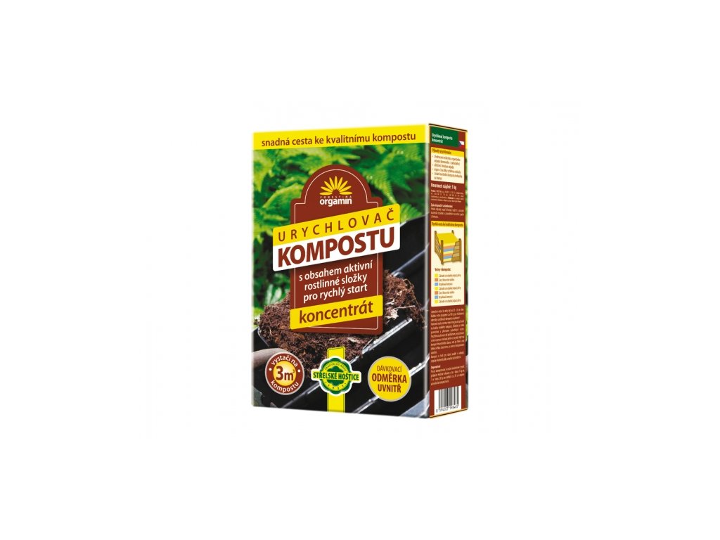 Koncentrovaný urychlovač kompostu obsahuje aktivní rostlinné složky, které významně urychlují proces kompostování. K samotnému kompostování je vhodná většina zahradního odpadu a kuchyňský organický odpad. 1 kg balení na 3 m3 kompostu. Balení: 1 kg.Doplňkové parametry