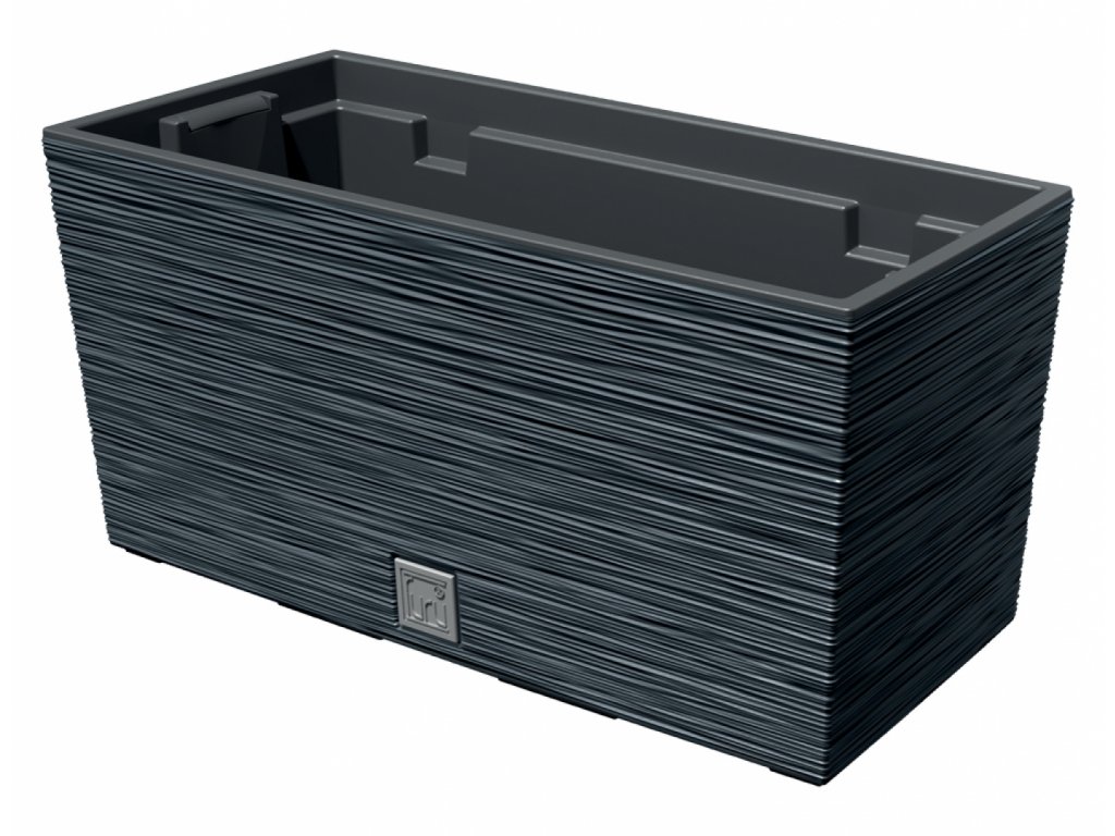 Plastový, matný truhlík v originálním designu. Povrch je strukturovaný, zdobí ho jemné zvlněné drážky. I díky nim působí truhlík hravě a robustně. Je vhodný do každého prostoru. Obdélníkového půdorysu, kónického tvaru. Výrobek je dodáván jako set 2v1, který se skládá ze samotného obalu a vnitřní vložky, která je určena k osázení. 100% recyklovatelný a je 100% recyklovatelný (plast, žlutý kontejner). Vhodné do interiéru i exteriéru. UV stabilní. Rozměry: šířka 58cm, hloubka 18cm, výška 20cm. Objem květináče: 18l, objem vnitřní vložky 12l. Barva: antracit.Doplňkové parametry