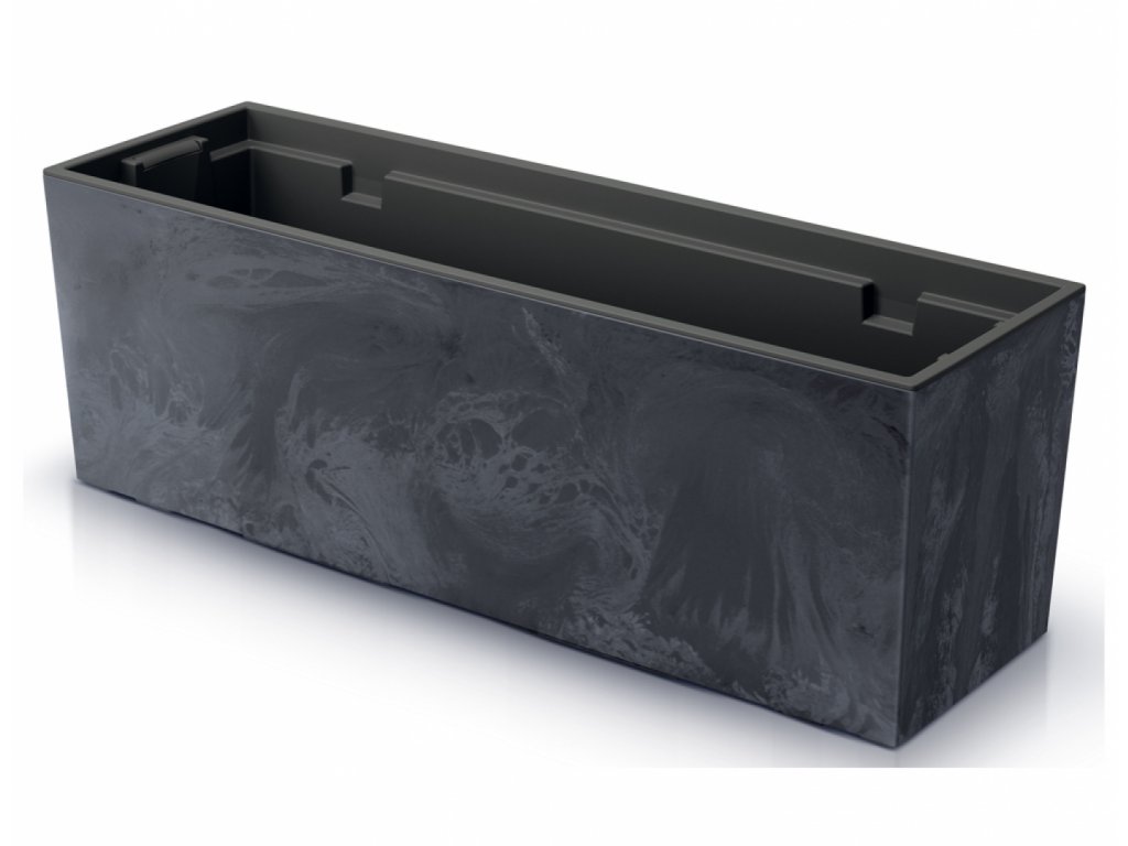 Matný, plastový, samozavlažovací truhlík. Povrch je hladký, v populárním dekoru imitace betonu, proto skvěle doplní zejména moderně zařízený prostor. Produkt je dodáván jako set samotného truhlíku a vnitřní vložky, určené k osázení. Obdélníkového půdorysu. Truhlík je ze 100% vyroben z recyklovaného materiálu a je 100% recyklovatelný (plast, žlutý kontejner). Vhodné do interiéru i exteriéru. UV stabilní. Rozměry: šířka 77cm, hloubka 24cm, výška 25cm. Objem květináče: 12l, objem vnitřní vložky 8l. Barva: antracit.Doplňkové parametry