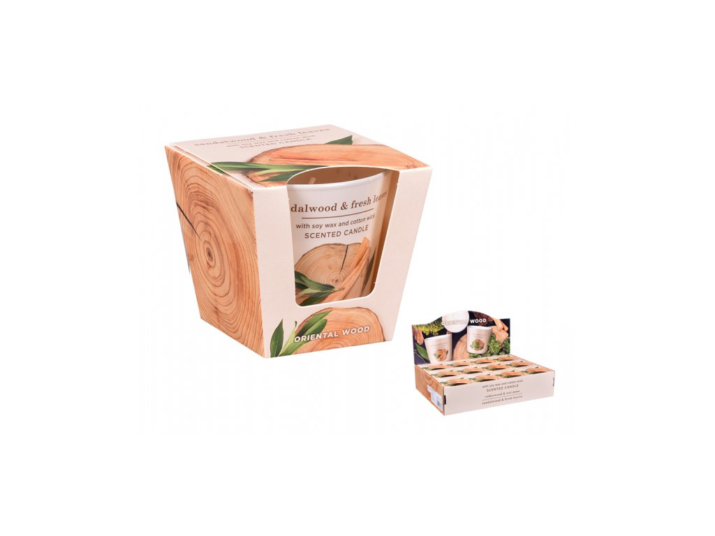 Vonná svíčka ve skle s vůní santalového dřeva. Etiketa a krabička jsou v dekoru dřeva. Doba hoření: 30 hod. Hmotnost balení: 115 g.Doplňkové parametry